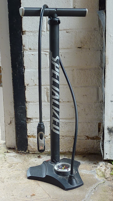 Probably worth me commenting on this particular track pump and why it’s important to buy one with care. This is a few years old now, probably no longer sold and therefore no need for me to review it properly. The main down side is that it feels a bit flimsy. When you have your feet holding it firmly to the floor and you’re pumping hard, make sure you pump straight down and not slightly sideways. This is because it feels a bit flimsy, especially where the barrel joins the base. It’s not all bad. The gauge is fairly accurate, it pumps efficiently Specialized have given it an ergonomically well designed handle and the tube is generously long. It works with Schrader (car type) and Presta valves.