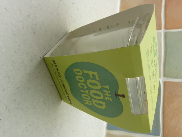Following on from The Food Doctor’s raw seeds and nuts I thought I’d try out these savoury roasted soya beans. Little did I know I would be thwarted as they were scoffed by Rachel, who is often dubious of some of these healthy foods I bring home from time to time. Rachel was with me in the kitchen as I opened the tub, we each tried about a spoonful.